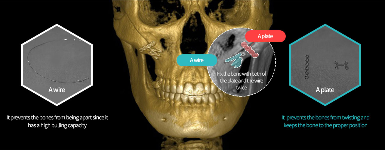 | Surgery performed with 1~2cm incision made to fixate the rear of the cheekbone |