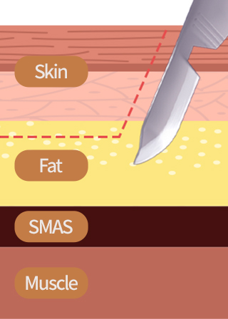 When the middle of the subcutaneous layer is dissected, many blood vessels are damaged, causing profuse bleeding, making bruises, or swelling last for a long time after surgery. TS minimizes bleeding by neatly dissecting just above the SMAS layer for rapid recovery and reduces post-operative swelling.
