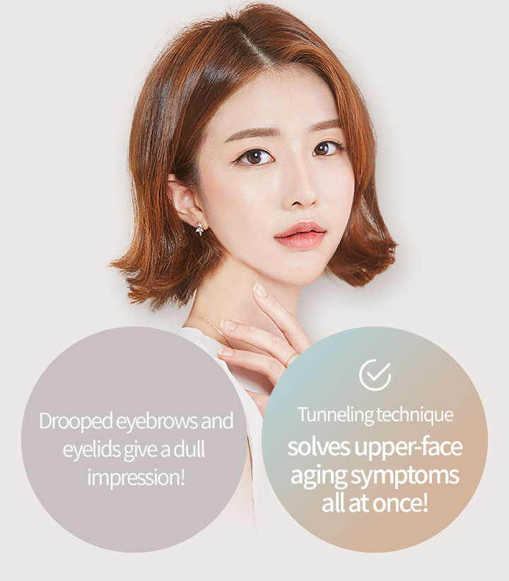 As you age, your eyebrows sag, and wrinkles between the brows and on the forehead develop, making your face look dull. TS helps you regain a refreshed and youthful look by targeting the entire forehead zone.