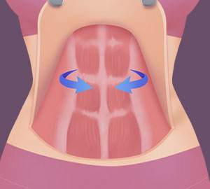 Sagging skin is removed and the relaxed rectus abdominis muscle is strengthened.