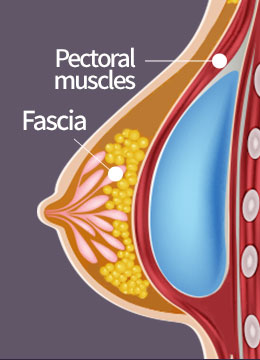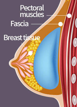 Implant insertion under the musclesThis method inserts the implant under the pectoral muscle.