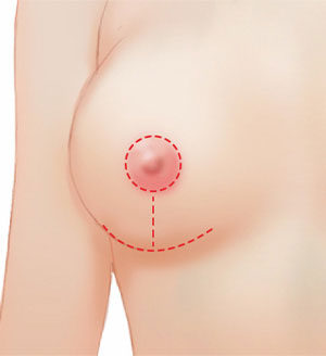 This surgical method makes a 4-5cm long vertical incision starting from the areola going downward.