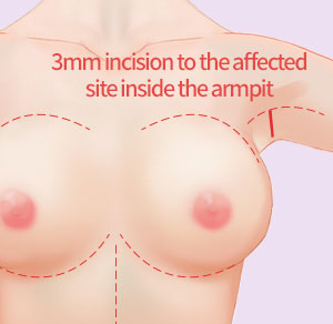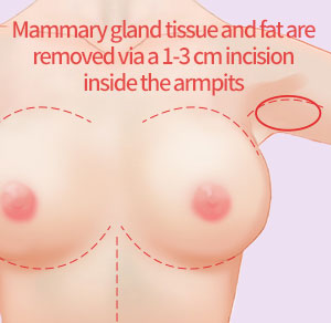 After making an 1-3 cm incision inside the armpits, the mammary gland tissue and fat are removed together.