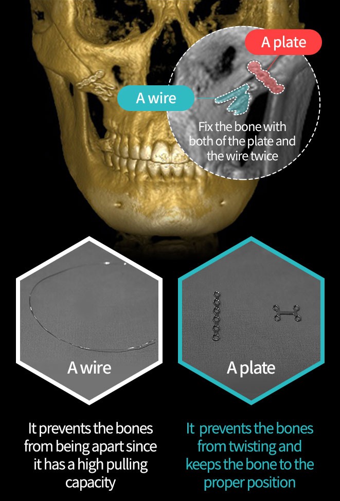 Cheekbone can move together with masseter muscle when talking, chewing, etc. if not firmly fixated. TS Dual Fix cheekbone reduction surgery is performed to prevent possible nonunion.