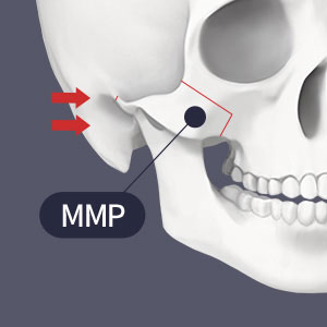 Osteotomy performed close to the eyes while maintaining cheek volume and characteristics.