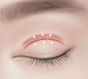 | Making eyes defined by strengthening muller muscles with no skin incision | Making eyes defined by strengthening the main muscle (levator muscle) after eyelid incision |