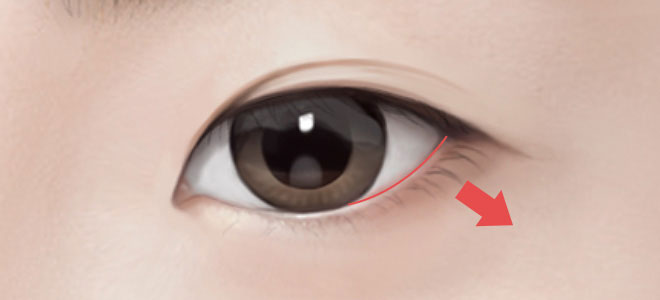 ‘ㄷ’ shape formed due to ligaments being pulled when eyes are opening and closing after making a straight incision to the back of the eyes.
