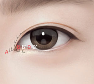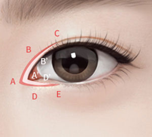 Designed to restore ㄷ shape outer corner due to conjunctiva exposure.