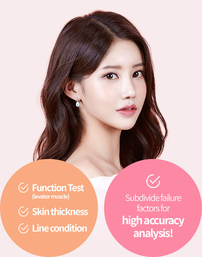 In the past, those with high crease sausage eyes had to wait over 10 years for possible revision surgery after the skin has stretched. However, it is possible to improve sausage eyes sooner with so-called ‘double-line pick’ surgery method by loosening adhesion of the exiting crease line and new lower crease line is made even though there is not excess skin.