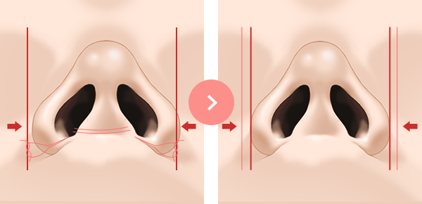 If nostrils are not as wide and large, it is narrowed by tying them together through a minimal incision made within the nose There's no scarring and recovery is rapid but there's possibility of recurrence.